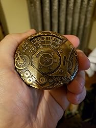I ordered the bright golden-brass and received a dark ruddy copper model. The disc is also unbalanced, spinning for a very short time. If held upright, it has a tendency to stop on the 20/2/14 range. It'll even swing backwards toward that range, against the original spin direction. I really don't understand how it appears that yellow-gold in the photo. To the naked eye the surface is red-orange.