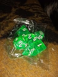 Loved the color and price of these dice, except the translucent green pack was split open and missing a D20. I'm not gonna return it, because I love the dice otherwise, but I'm very disappointed I won't have the complete set. If there's any way to have the one die sent to me, it would be greatly appreciated.