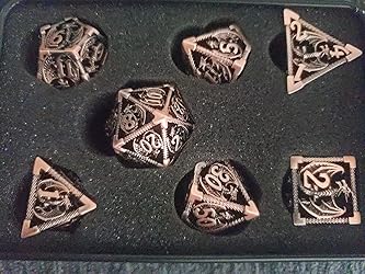 They look amazing! Weight is a little less than I expected (good thing) and comparable to resin dice. Any reviews saying the paint job was bad must have gotten a bad batch, mine are amazing (red copper) and got a set for my neice (green and gold) which were perfect too. I am only sad that I can't get any extra D6 or a 10 or 11 piece set that have extras. Still 5 stars!