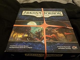 So I fell headfirst into the Arkham Horror LCG pit. I got all of Dunwhich and half of Carcosa but quickly found I simply didn't have enough space for everything. Keeping it all in plastic bags was an inelegant solution and deckboxes for everything was clumsy. So A quick google search later and I found this, reviews were solid so I thought I'd grab it with some Christmas money. Wow. I am SUPER impressed! It fits all encounter cards from Dunwhich + All its mythos packs + 1/2 of Carcosa. I will say I have the core stuff stored in another box (Return to the Night of the Zealot) but without Carcosa all of that would definitely fit here! It was a little tight getting into the box and part of my box tore, but otherwise its amazing. The Bit container (In the center) is so so so soooo nice to have! Also, while the lid could no longer close all the way this box comes with the rubber band featured in the photo so you dont have to worry about the lid coming off and everything flying around. Overall, I Love this. Construction was very easy (You dont HAVE to use glue but its probably a good idea), and the flexibility of moving the dividers around is unmatched. I may have to get a second one as my collection grows!