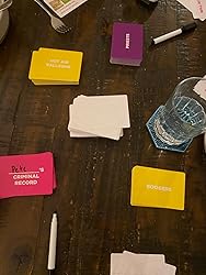 Most of you likely know there's another "classic game" that this is similar to. Forbidden Words adds a nice flair to stand-apart and we're glad we decided to get it. Don't let the easy-looking cards fool you, when either the person guessing or the people giving the clues are rushing, they might have a brain-fart or get tongue-tied trying to rush...and just not get it. Plus, not only are you NOT allowed to say the forbidden words listed..but you're also not allowed to say "It rhymes with..." or use gestures -- which actually ends up being tricky when you're trying to get as many words in before the timer is up. Leading to lots of "How could you not get that?!" moments. There are some inappropriate cards mixed in but there aren't a ton. If you're the type that prefers more, it's still a lot of fun and they've done a good job adding humor/knowing related words someone may think of (Example: for "Milkshake", yard is forbidden). Buuut...considering how most games are nowadays, I'm guessing they'll end up with NSFW expansions…they definitely would get my money, if so 😆🤷♂️. There are a lot of cards and they have two-sides so that you're getting double the amount in the box (one side purple, other blue), total of 600 buzz words. They're larger than many other card games.