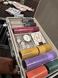 Richie set 100% meets my expectations. Great quality ceramic chips, size and weight is perfect, sound is very satisfying. Cards are also very good, case seems a little flimsy but I’m not going to carry it around a a lot anyway. All in all excellent product.