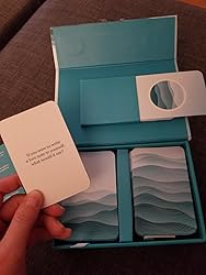 Got this game to try something new instead of game night with the friend group and it did not disappoint. There are two stacks, "deep dive" and "testing the waters" (for lighter questions) and it was a fun way to hear how our friend's brain's work! I bought this initially because visually it's a very pretty game but I'm going to keep it for the variety of questions on the cards. Can't wait to ask a partner the deeper questions!