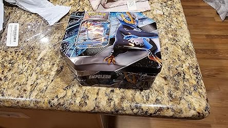 Item was received used and open. The box was damaged and ripped. The item was not secured to the box and you can see the four corners where the zip tie packing should have been. Toy was left on ‘ON’. Disappointed since my kid was waiting for that toy and now I need to take it away to return it. Don’t need used toy.