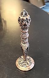 So gorgeous! Looks more like a d@gger than a wand, but it's not actually a weapon, either, so whatever. The various levels spin so super smooth and forever, except for the very top (with the skulls) which is a little slower on mine. It stands just as pictured in its base, which also spins nicely (somewhere between the smoothness of the super-smooth rings and the sticky skull ring) The number system looks nice and ancient, though it is quite simple and easy to understand without referring to any guide or needing to memorize anything: a line is 5, a dot is 1. Add them up, and you've got your roll. There could be debate as to whether this counts as "dice" but in my (limited) experience, the term "dice" is used kind of loosely. In Maya culture, they used "dice" (scholars call them "dice") but they were really kernels of dried corn, colored black on one side with charcoal. They would shake them up, throw, and see how many were black-side up: dice! So any dice goblin should be pleased to add this to their collection!