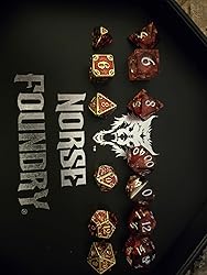 I really enjoy the look of these but it was missing a dice as stated in the title. Plus these are kind of on the smaller side, I prefer my dice to have a bit of heft to them especially if they are metal. The D20 feels like it should be much bigger but that is probably why they sell the runestone versions of these dice separately. The look of these are immaculate I just wish they were standard sized. I am getting these replaced with a full set and ordered the runestone d20 with the same colors.